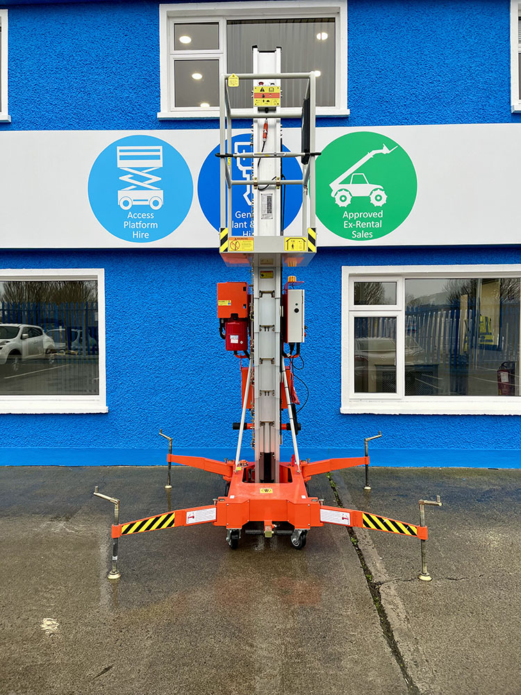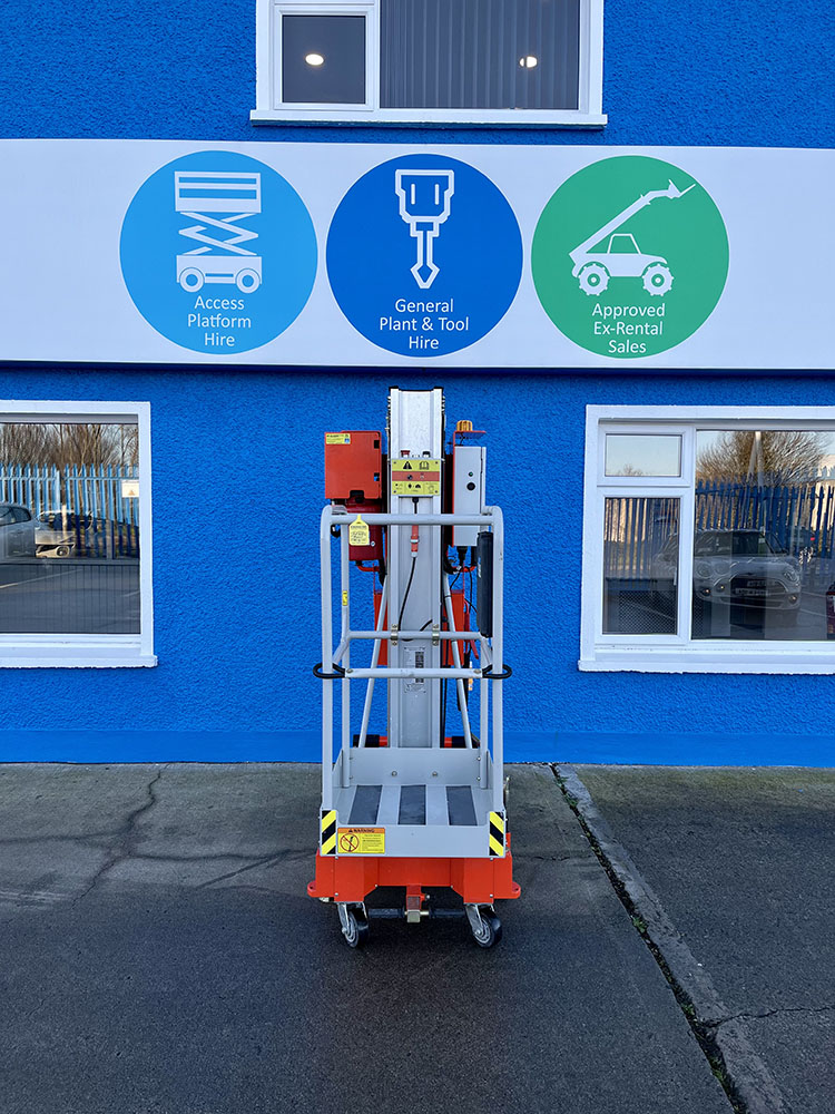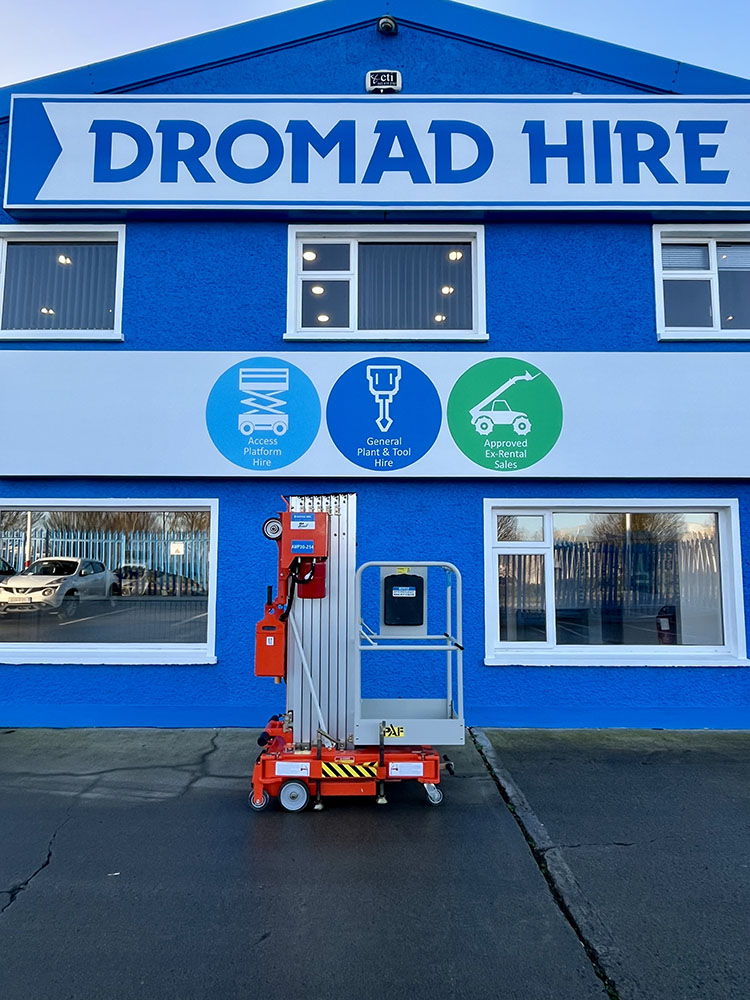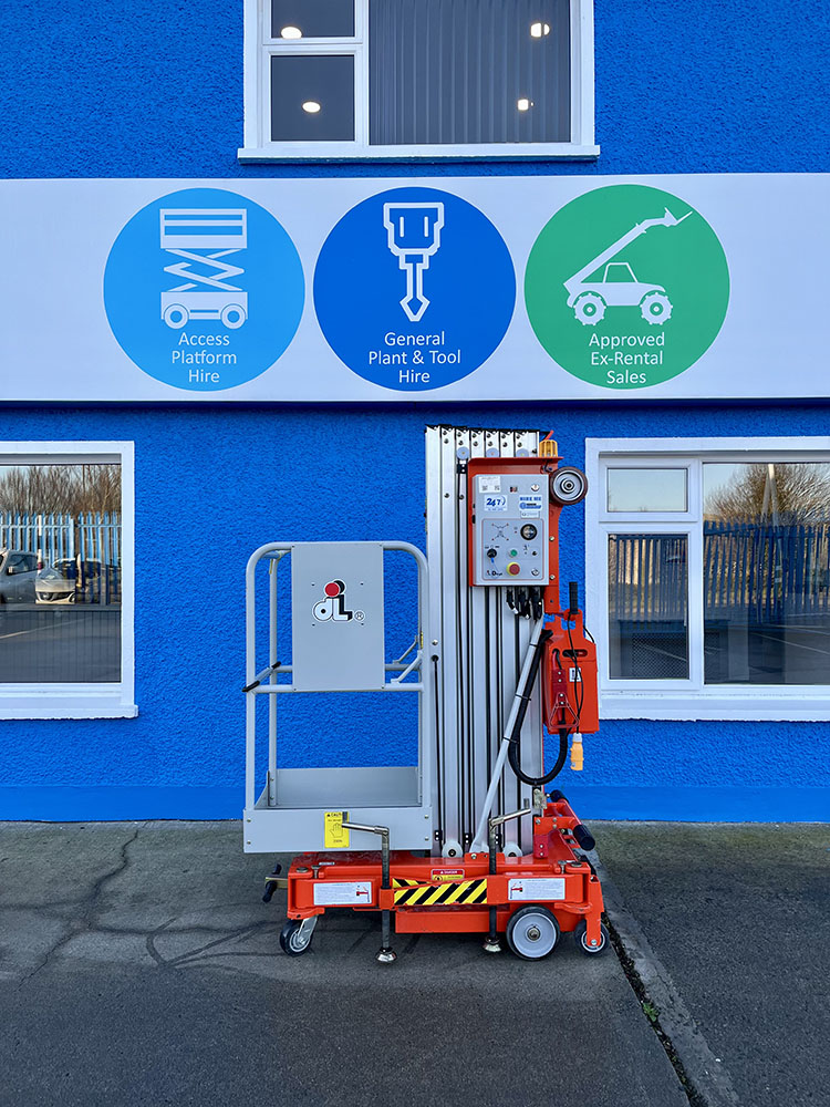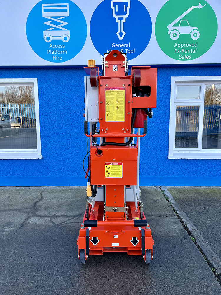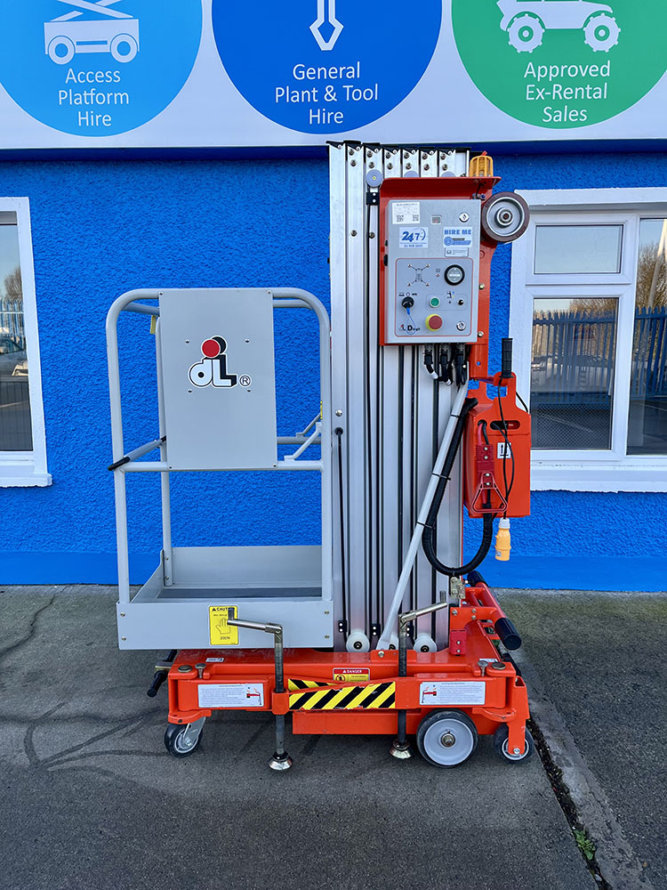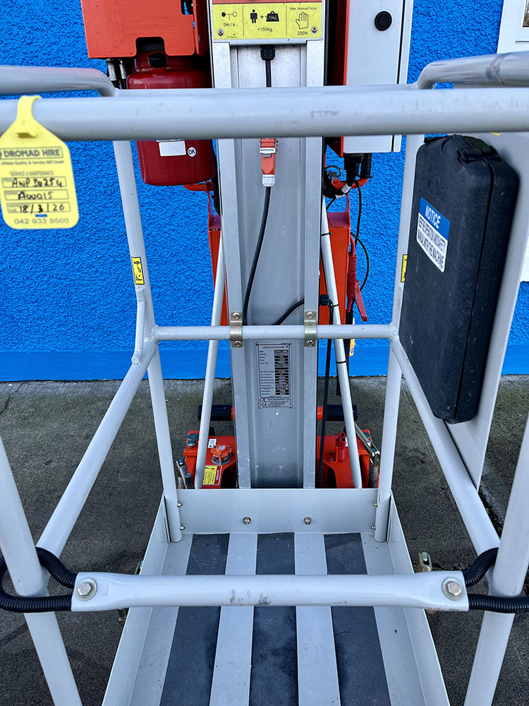 Dingli GTWY11-1300DC Compact Mast Lift, owned by Dromad Hire from new. This Approved Ex-Rental Demo model is in immaculate condition. Fully serviced & tested 22/12/2025 by our highly qualified engineer, which included: new safety decals & platform control decals.