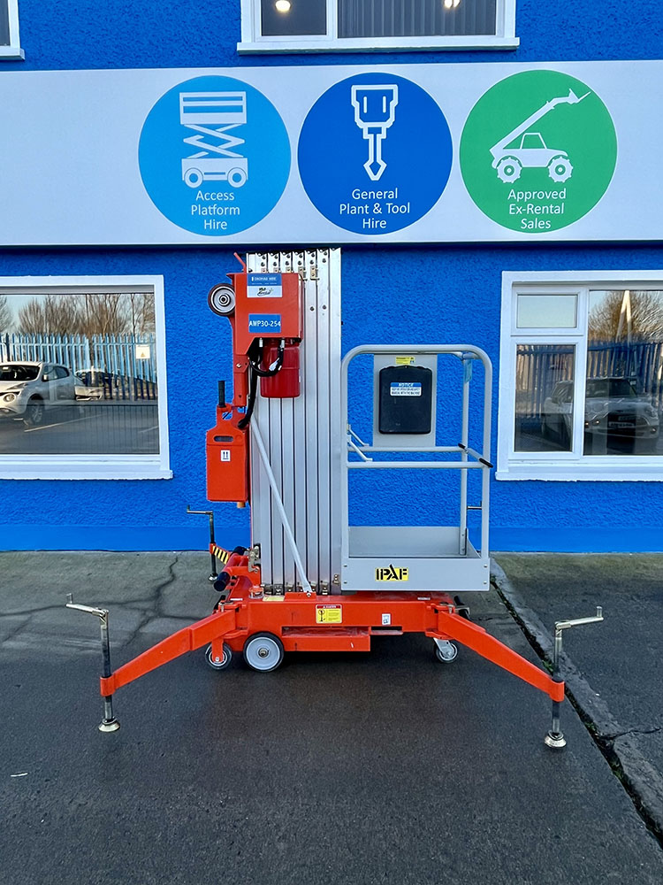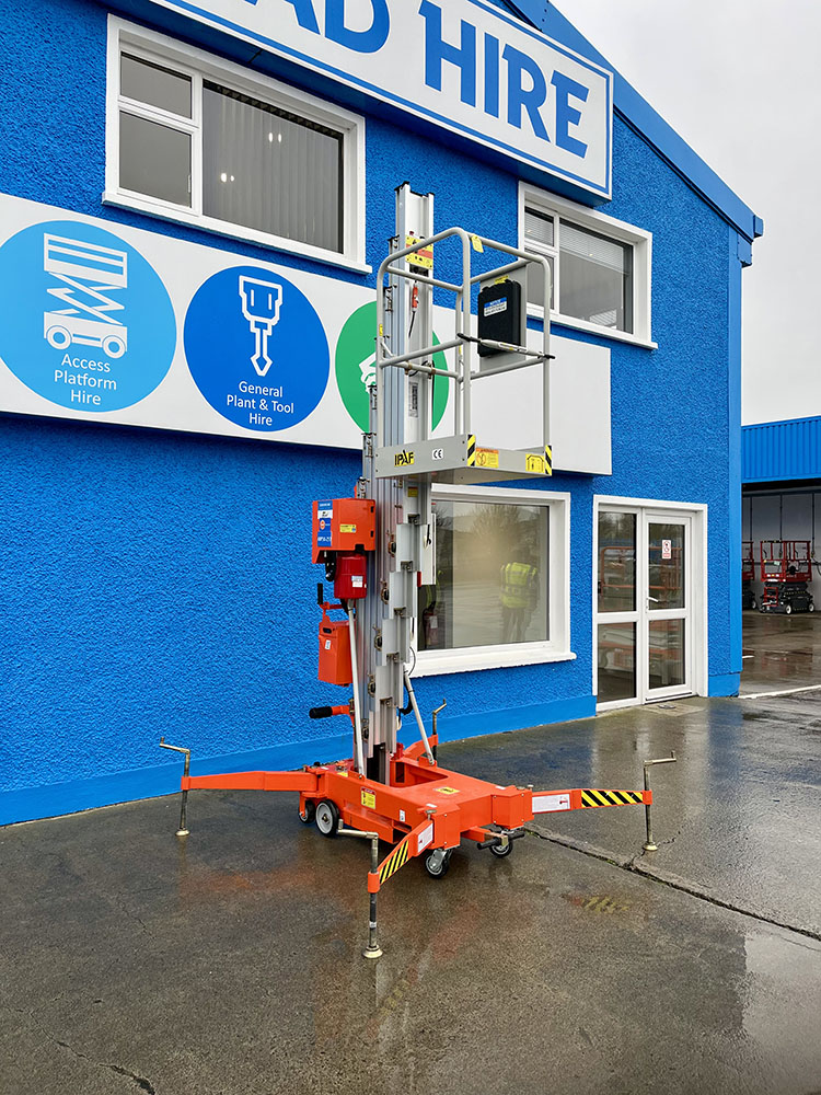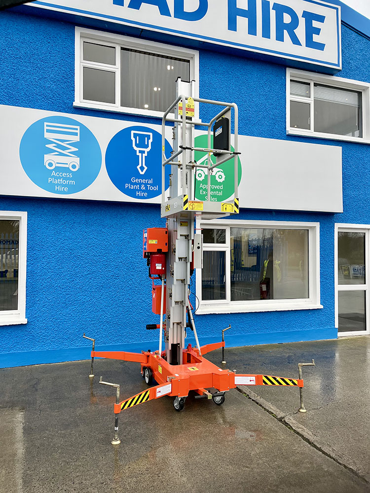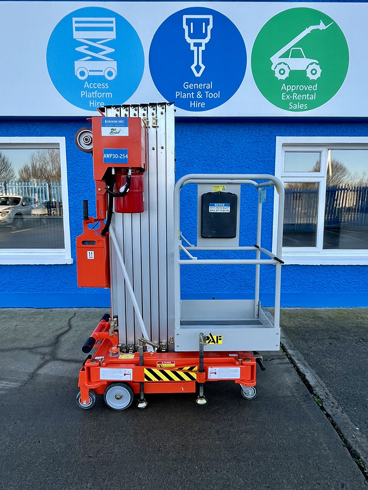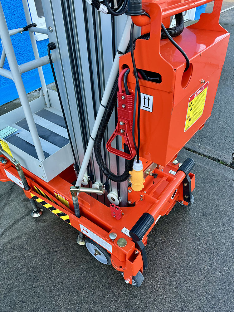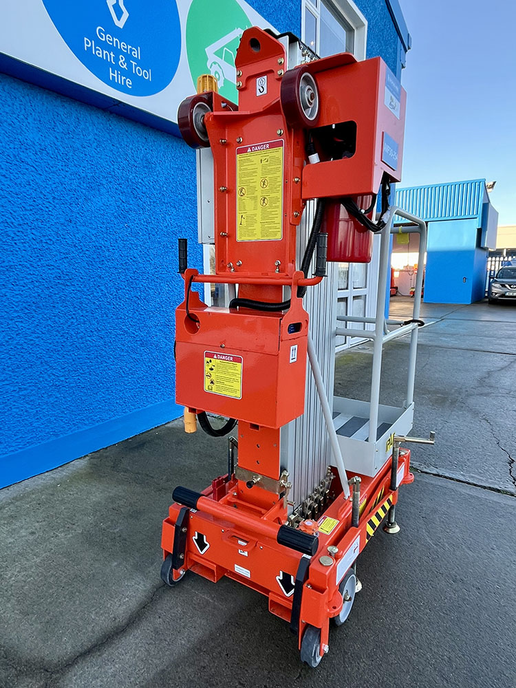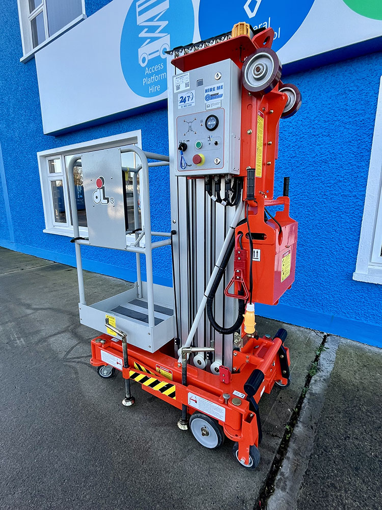 Dingli GTWY11-1300DC Compact Mast Lift, owned by Dromad Hire from new. This Approved Ex-Rental Demo model is in immaculate condition. Fully serviced & tested 22/12/2025 by our highly qualified engineer, which included: new safety decals & platform control decals.
