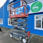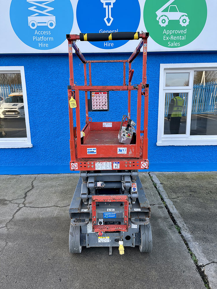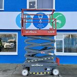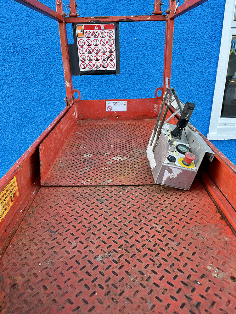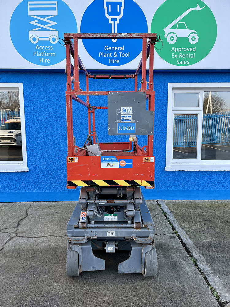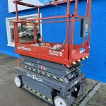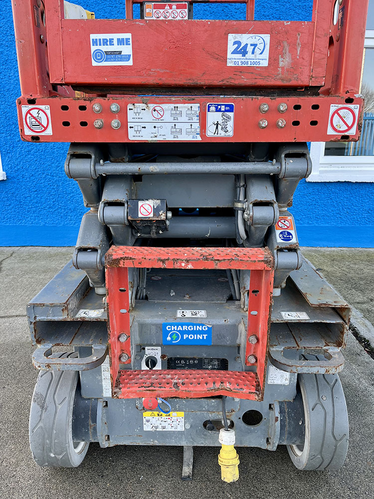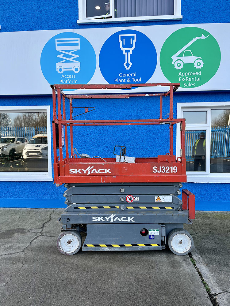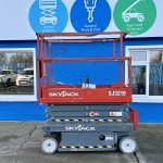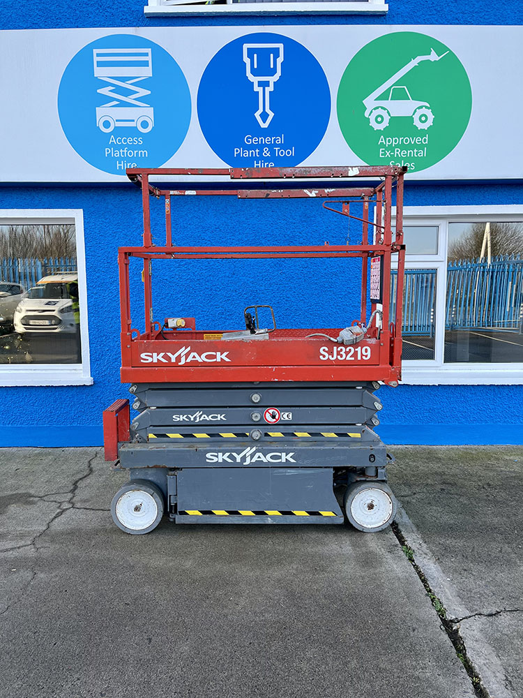 Skyjack SJ3219 Electric Scissor Lift, owned by Dromad Hire from new. This Approved Ex-Rental model is in meticulous condition – very low hire usage on this unit. Fully serviced & tested 23/10/2025 by our highly qualified engineer which included: new safety decals & site beacon.