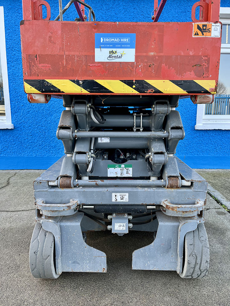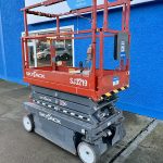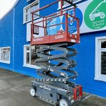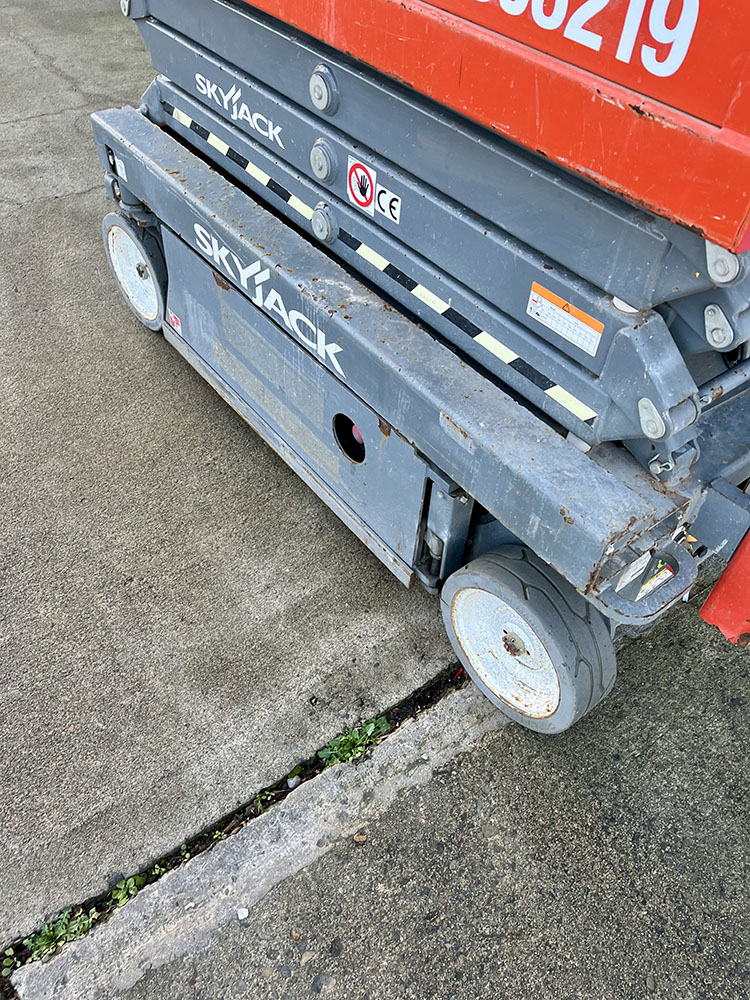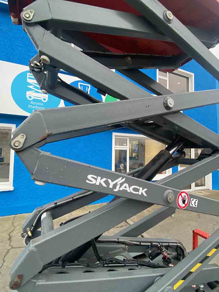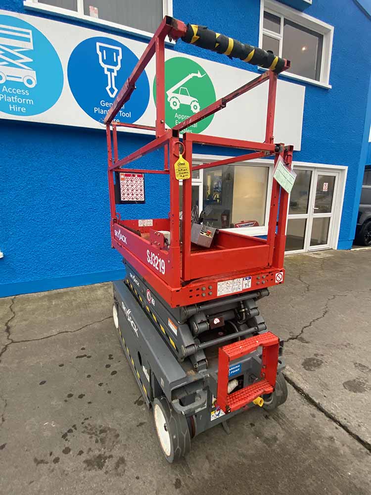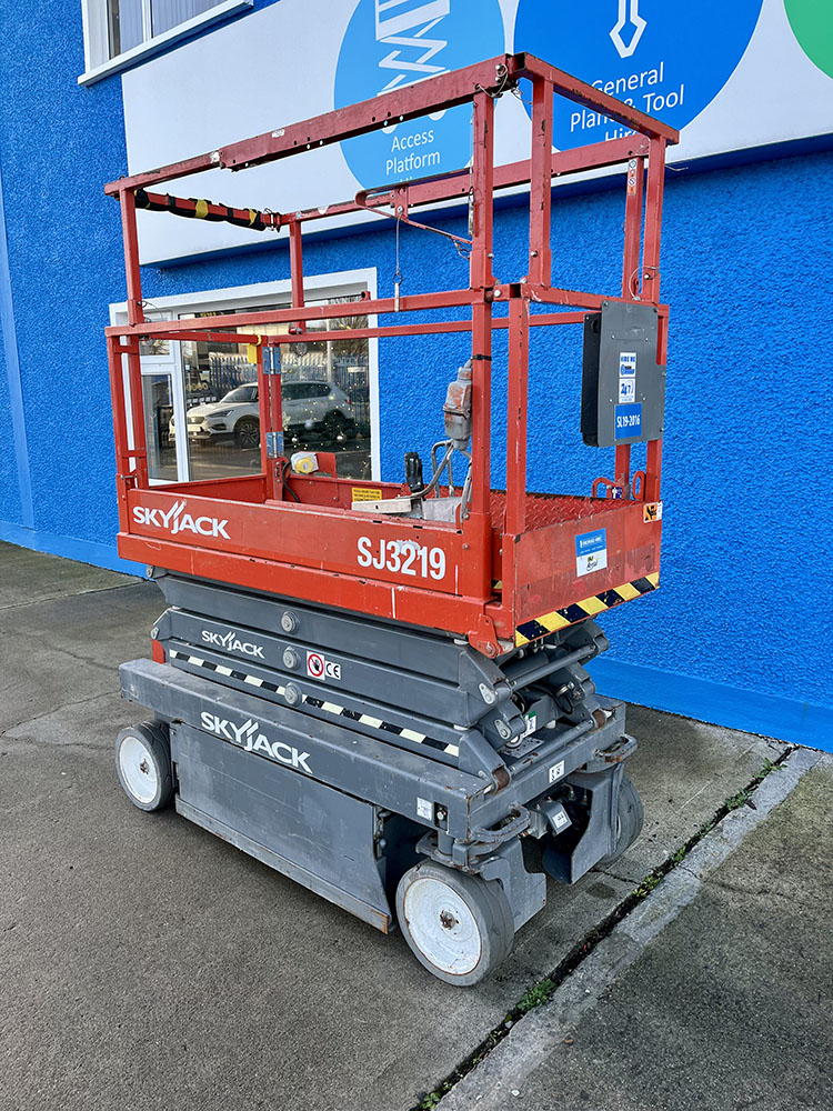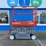 Skyjack SJ3219 Electric Scissor Lift, owned by Dromad Hire from new. This Approved Ex-Rental unit is in meticulous condition – with low hire hours and full workshop inspection completed. Fully serviced & tested 23/10/2025 by our highly qualified engineer which included: new safety decals & platform gate latch.