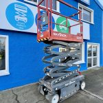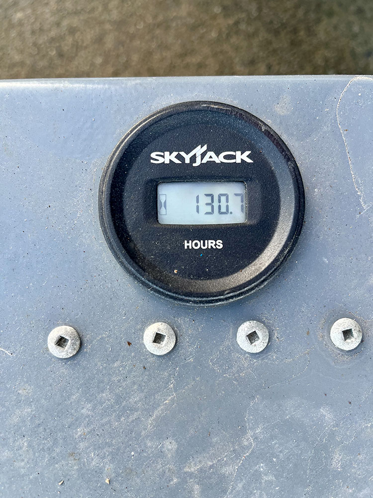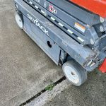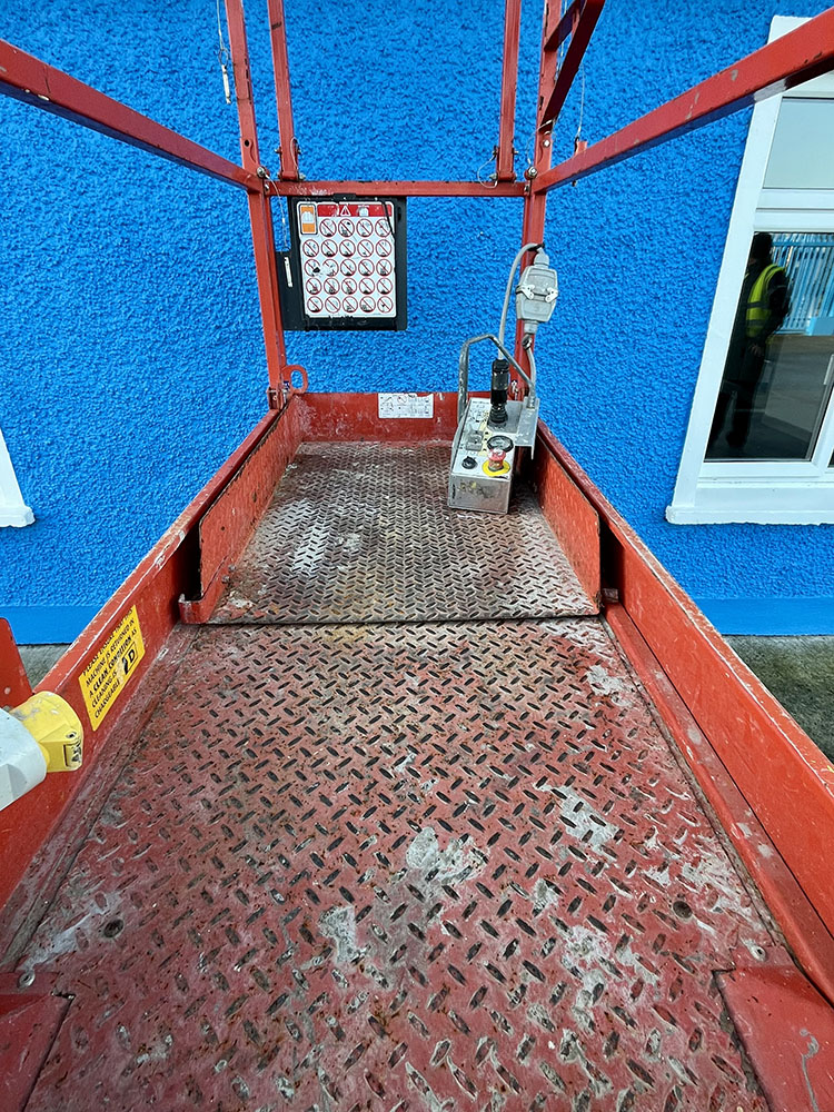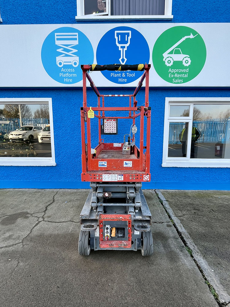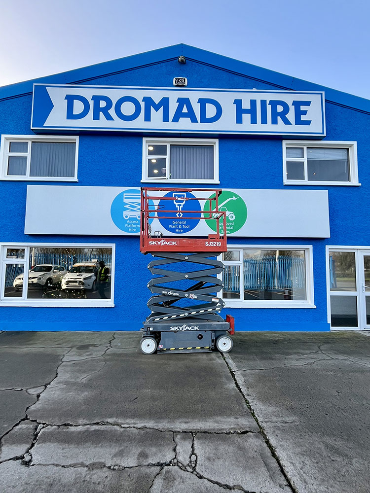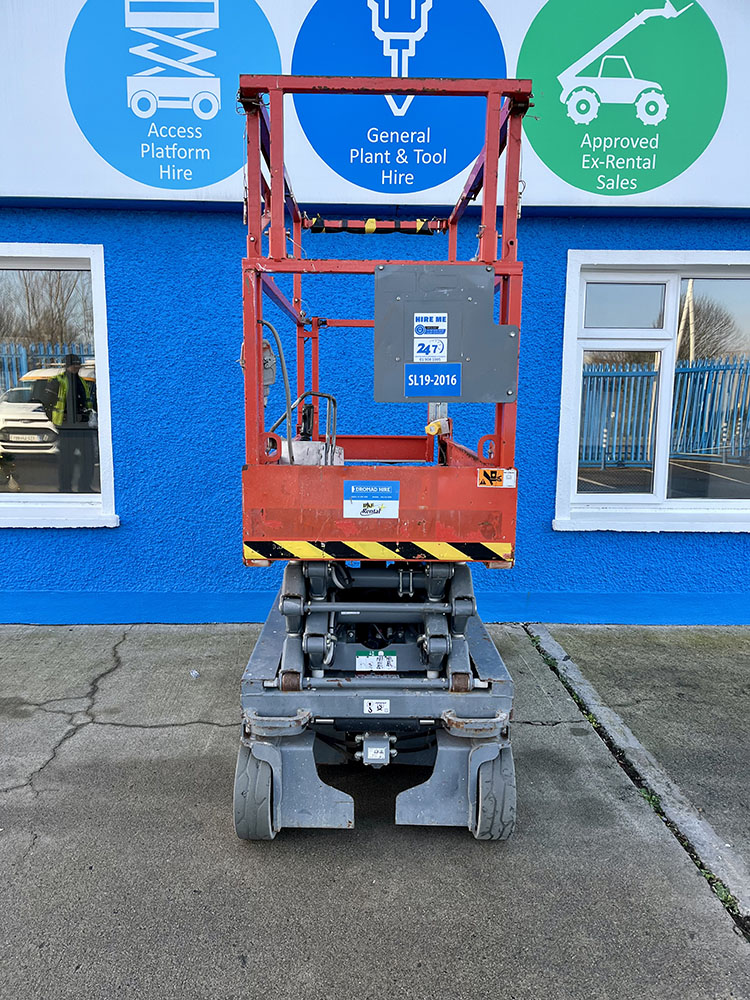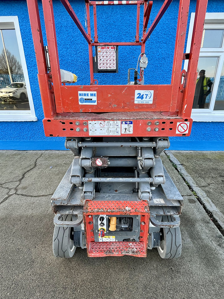Skyjack SJ3219 Electric Scissor Lift, owned by Dromad Hire from new. This Approved Ex-Rental unit is in meticulous condition – with low hire hours and full workshop inspection completed. Fully serviced & tested 23/10/2025 by our highly qualified engineer which included: new safety decals & platform gate latch.