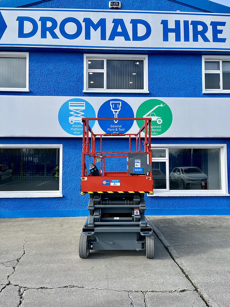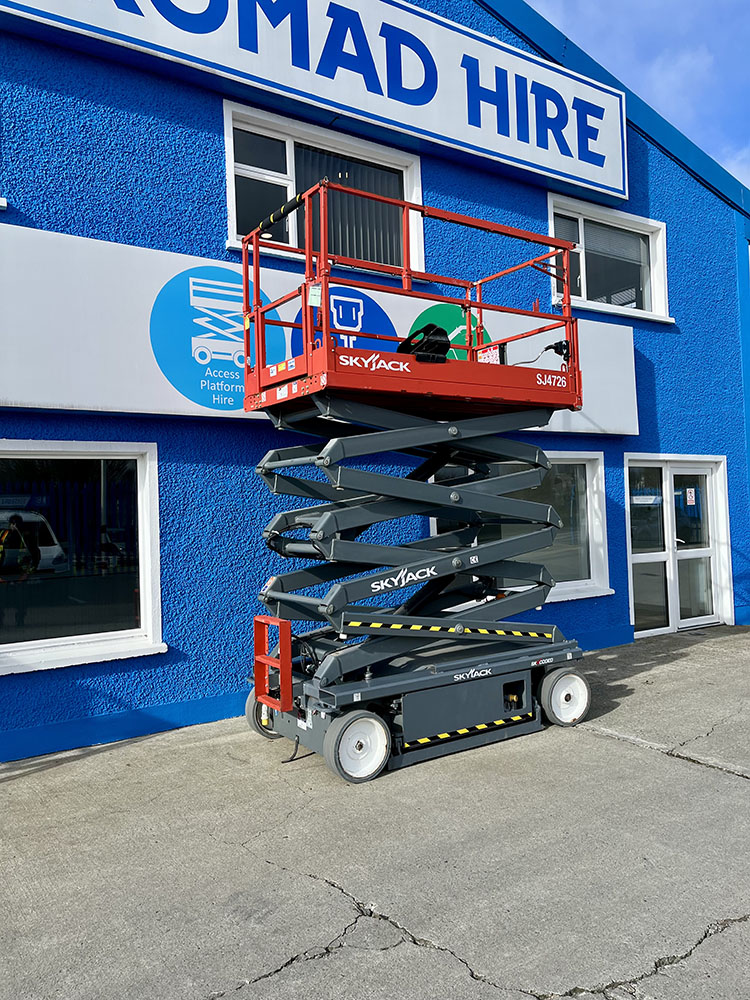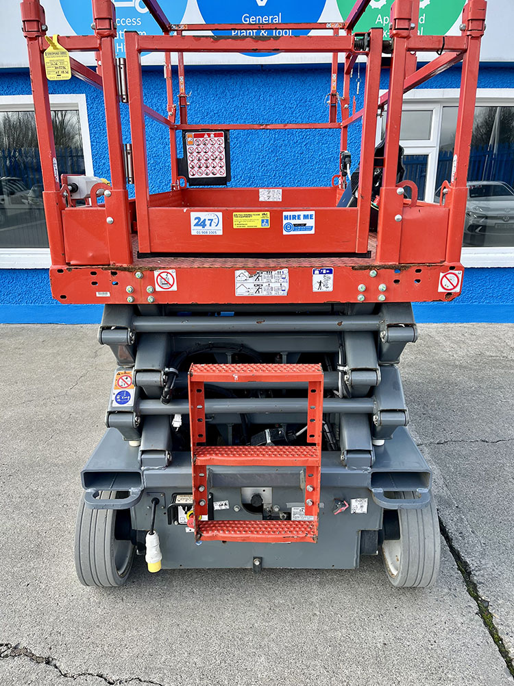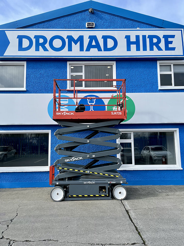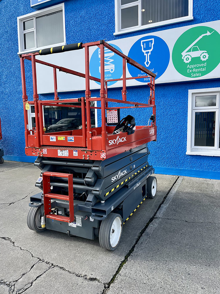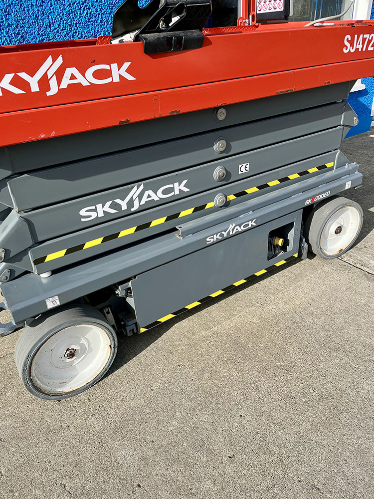 Skyjack SJ4726 Electric Scissor Lift, owned by Dromad Hire from new. This Approved Ex-Rental model is in meticulous condition with very low hire usage. Fully serviced & tested 09/01/2026 by our highly qualified engineer, which included: new platform control decals & platform gate latch.