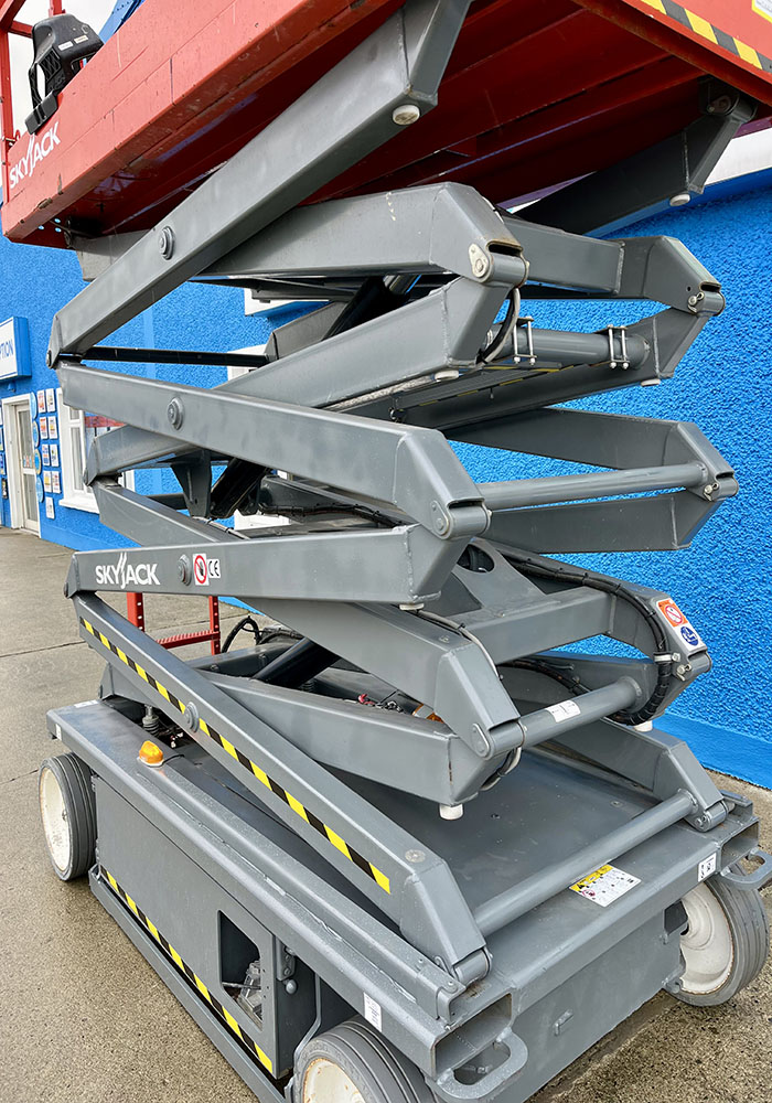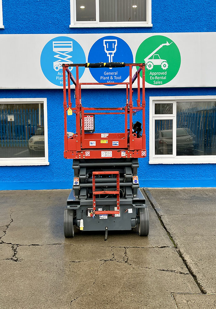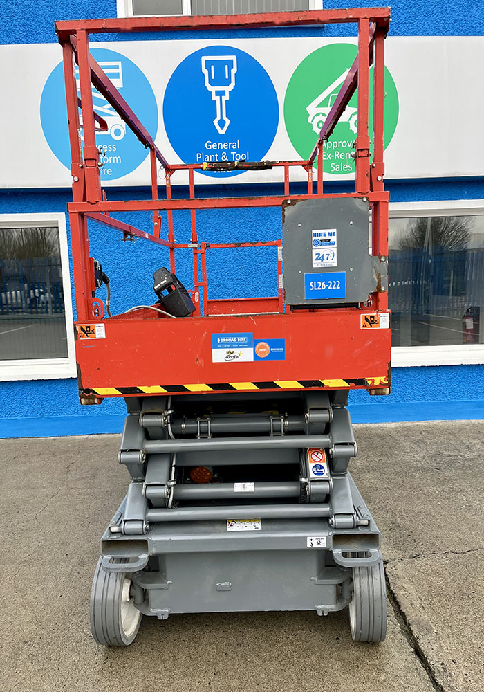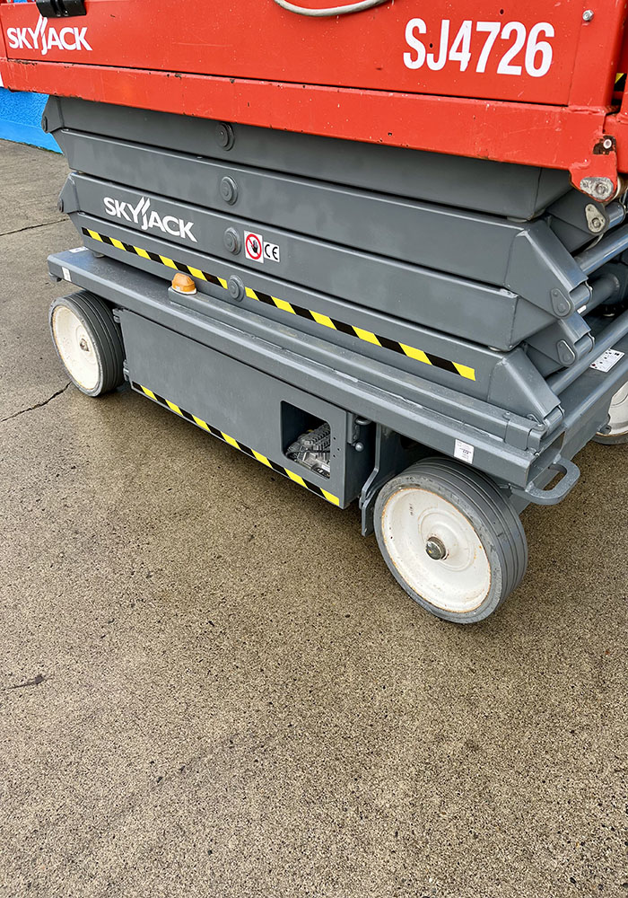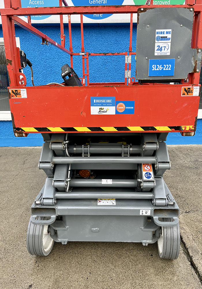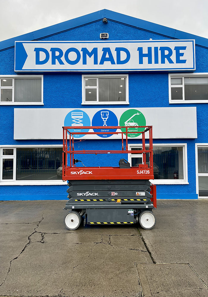 Skyjack SJ4726 Electric Scissor Lift, owned by Dromad Hire from new. This Approved Ex-Rental model is in pristine condition – viewing highly recommended. Fully serviced & tested 09/01/2026 by our highly qualified engineer, which included: new safety decals & new operator manual box.