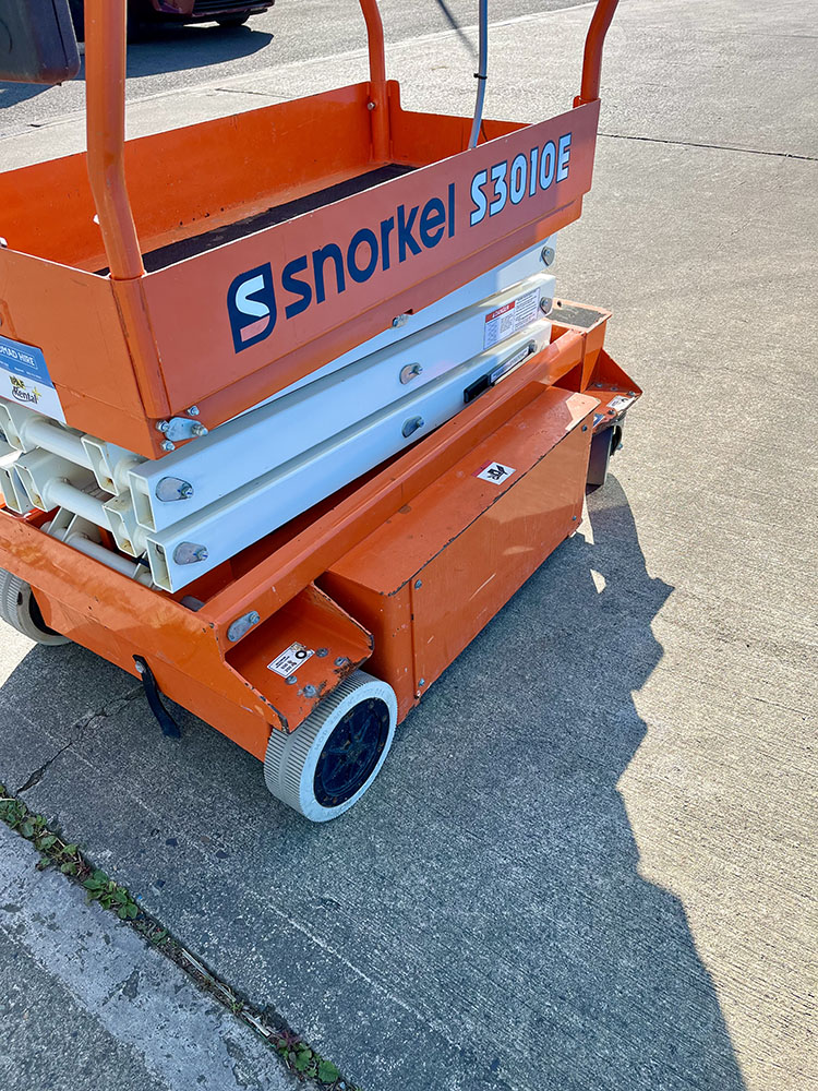 Snorkel S3010E Micro Scissor Lift, owned by Dromad Hire from new. This Approved Ex-Rental Model is in meticulous condition – very low hire usage on this unit. Fully serviced & tested 17/02/2025 by our highly qualified engineer which included: New safety decals & operator manual box.