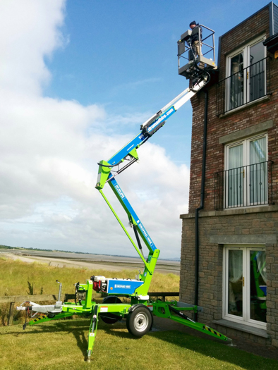 This easily towed trailer mount gives a 12.2m working height and a 6.1m outreach, quick and simple setup allows you to move on from one job to the next. One significant feature is the Bi-energy power ( can be operated by petrol engine or battery ) allows indoor & outdoor use. It is also fitted with retractable axles as standard to allow access through narrow openings.